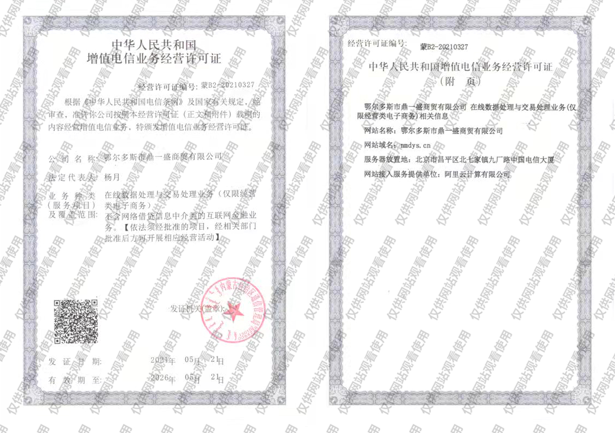 Copyright © 鄂爾多斯鼎一盛商貿(mào)有限公司 版權(quán)所有 蒙ICP備2021001916號(hào) 營(yíng)業(yè)執(zhí)照 蒙公網(wǎng)安備 15060202000297 電信增值許可證 蒙B2-20210327