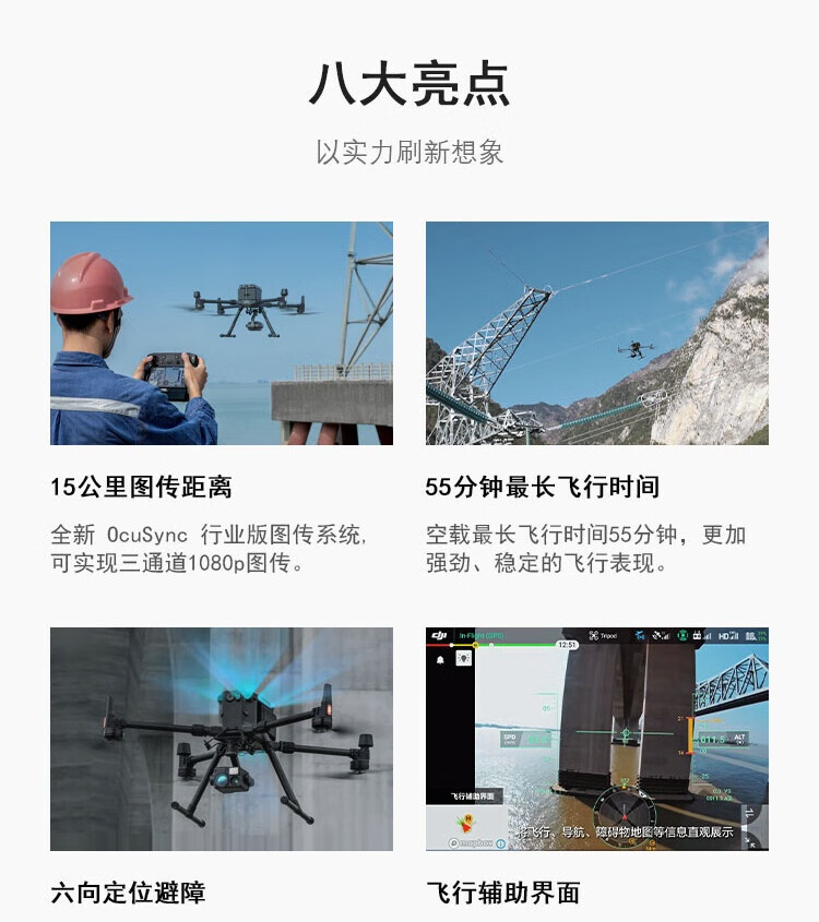包裝清單  :   飛行器× 1 DJI 帶屏遙控器行業(yè)版× 1 USB 充電器× 1 USB-C 線× 1 TB60 智能飛行電池× 8 WB37 智能電池× 3 2110 槳葉 (CW) (對(duì))× 1 2110 槳葉 (CCW) (對(duì))× 1 起落架× 2 備用搖桿防塵罩 (對(duì))× 1 備用槳葉折疊固定件× 2 備用減震球× 4 雙 A 口 USB 線× 1 視覺(jué)標(biāo)定板× 1 外包裝箱× 1 遙控器掛帶× 1 膠塞 (套)× 1 維修工具套裝× 1 BS60 電池箱× 1 清潔工具套裝× 1 云臺(tái)相機(jī)× 1 MicroS