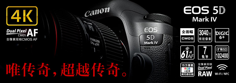 包裝清單  :   EOS 5D Mark IV機身×1,電池充電器 LC-E6E(含電源線)×1,鋰電池 LP-E6N×1,USB接口連接線IFC-150U II×1,連接線保護器×1,相機寬背帶×1,EF 24-105mm f/4L IS II USM×1,鏡頭遮光罩 EW-83M×1,鏡頭軟包 LP1219×1,保修卡×1,說明書×1,包裝盒×1