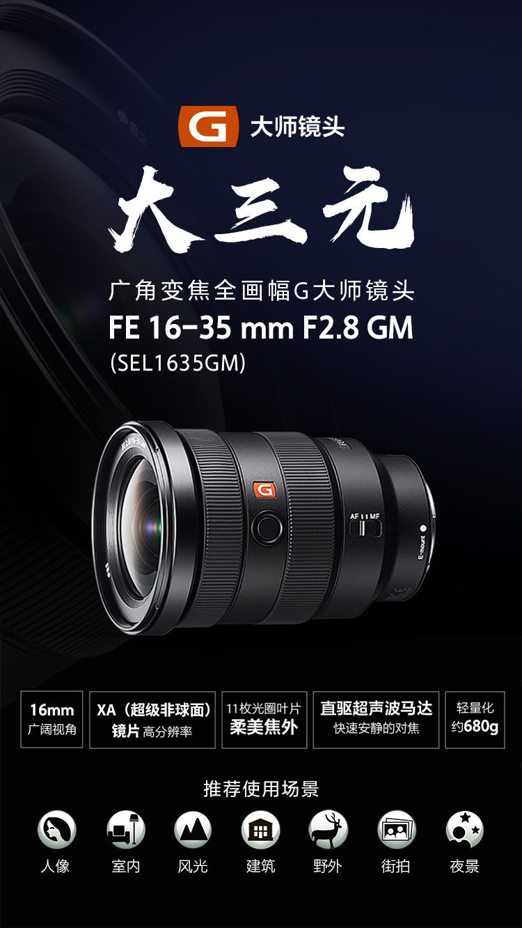 包裝清單  :   SEL1635GM鏡頭 (1) 鏡頭遮光罩 (1) 前鏡頭蓋 (1) 后鏡頭蓋 (1) 產(chǎn)品說(shuō)明書 (1) 保修卡 (1) 外包裝 (1)