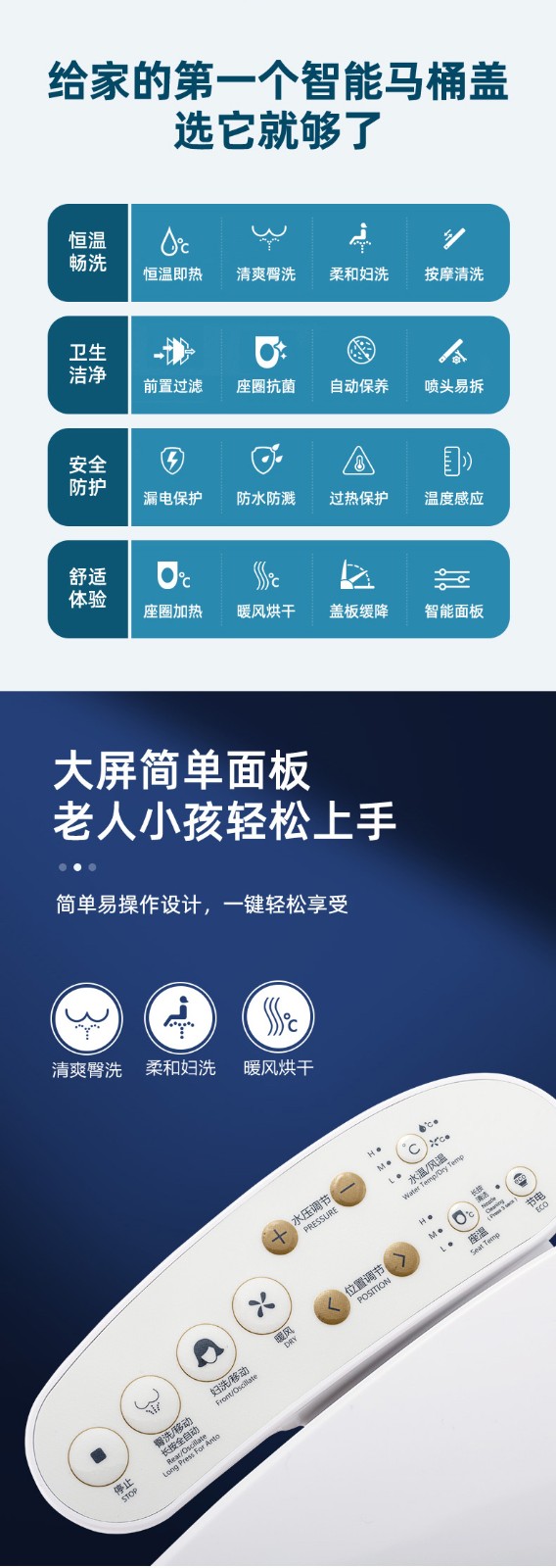 6、4檔風溫、水溫、座溫可調節(jié)、